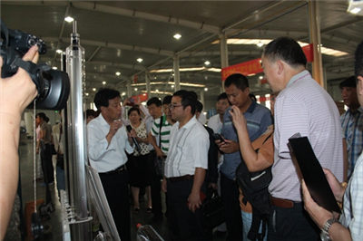 (考察團(tuán)對光源太陽能專利產(chǎn)品“內(nèi)聚光減容太陽能中高溫集熱管”詳細(xì)了解)