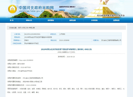 中標(biāo)2019年邢臺(tái)經(jīng)濟(jì)開發(fā)區(qū)燃?xì)獗趻鞝t采購項(xiàng)目(留村鎮(zhèn))!![]()