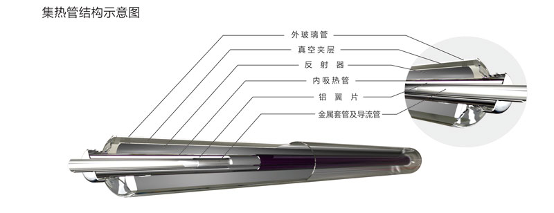 技術(shù)特點:一是內(nèi)置CPC反射器。外罩玻璃管與吸熱管采用同軸套管,在真空管內(nèi)壁下半周設(shè)置金屬拋物面反射器,運用拋物面原理實現(xiàn)了全角度采光,反射器不受大氣污染,聚光效果更好。二是耐高溫鍍膜技術(shù)。內(nèi)吸熱管表面濺射耐高溫太陽吸收膜層,內(nèi)外管之間抽真空,工作溫度400℃以上膜層不脫落、不老化。三是強制傳質(zhì)傳熱技術(shù)。在吸熱管內(nèi)插裝金屬套管,套管內(nèi)置入金屬導(dǎo)熱管,使管內(nèi)的介質(zhì)容量減少了70%,大大提高了傳質(zhì)傳熱效率。四是安全承壓技術(shù)。金屬套管與聯(lián)集箱采用絲扣連接,保證系統(tǒng)工作安全可靠。經(jīng)權(quán)威機構(gòu)檢驗,太陽能吸收比、熱損系數(shù)、真空品質(zhì)等技術(shù)指標(biāo)均優(yōu)于國家標(biāo)準(zhǔn)。采用該產(chǎn)品組成的太陽能中高溫?zé)崂孟到y(tǒng),穩(wěn)定工作溫度可達(dá)到163℃蒸汽,真正實現(xiàn)了太陽能由“熱水應(yīng)用”到“熱能應(yīng)用”的跨越式提升,填補了國內(nèi)太陽能中高溫真空集熱管在160℃溫區(qū)的技術(shù)空白??萍汲晒b定認(rèn)為:該產(chǎn)品的綜合性能達(dá)到了“國內(nèi)領(lǐng)先水平”,系統(tǒng)可廣泛用于太陽能飲用開水、采暖制冷、食品加工、紡織印染、農(nóng)副產(chǎn)品烘干等多種行業(yè)。對促進大氣污染治理,推動我國能源結(jié)構(gòu)調(diào)整具有重要意義。