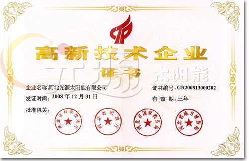 河北省高新技術(shù)企業(yè)證書(shū)