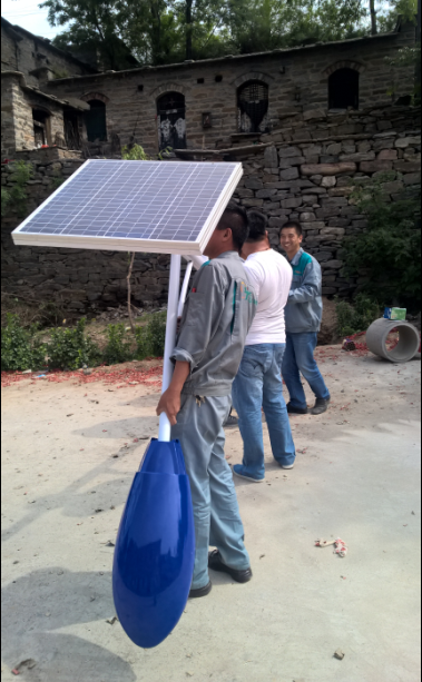 我們的同事們頂著著午間大太陽,積極為村民安裝太陽能路燈。