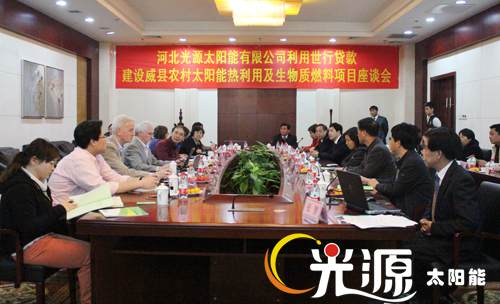 識(shí)別團(tuán)一行在河北省發(fā)改委外資處副處長(zhǎng)史海峰、河北省財(cái)政廳涉外處副處長(zhǎng)何貴滿(mǎn)、河北省新能源技術(shù)推廣站副主任王香雪及市直有關(guān)部門(mén)負(fù)責(zé)人的陪同下實(shí)地考察了光源公司威縣農(nóng)村太陽(yáng)能熱利用及生物質(zhì)燃料項(xiàng)目。通過(guò)考察了解了太陽(yáng)能采暖、太陽(yáng)能熱開(kāi)水系統(tǒng)的工作原理、項(xiàng)目周邊環(huán)境及使用情況,并對(duì)項(xiàng)目的具體情況展開(kāi)了座談?dòng)懻摗9庠垂靖笨偨?jīng)理邵東坤就光源公司的基本概況、經(jīng)營(yíng)情況以及世行貸款項(xiàng)目概況向識(shí)別團(tuán)進(jìn)行了匯報(bào),識(shí)別團(tuán)針對(duì)項(xiàng)目的建設(shè)內(nèi)容、開(kāi)發(fā)潛力、市場(chǎng)風(fēng)險(xiǎn)等問(wèn)題進(jìn)行了提問(wèn)和討論。
