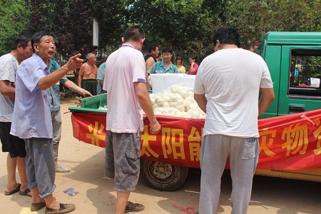 根據(jù)開發(fā)區(qū)管委會統(tǒng)一安排,轄區(qū)內(nèi)企業(yè)對受災村民在生活上進行對口支援。光源太陽能公司與其他幾家企業(yè)支援景家屯村。其中光源公司為景家屯300名村民提供一日三餐,解決300口人的生活問題。