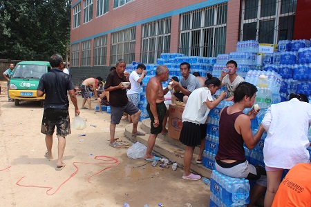邢臺經(jīng)濟開發(fā)區(qū)東汪鎮(zhèn)景家屯村,是邢臺7.19洪水侵襲的重點村之一。從7月19日晚斷電斷水至今,水電供應因施工難度大,至今仍未恢復。村民一日三餐,僅以礦泉水、方便面(干吃)充饑。
