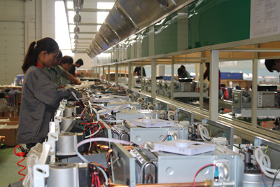 生產(chǎn)車間:不斷改進工藝,合理安排人員,逐步提高生產(chǎn)效率,電鍋爐日生產(chǎn)能力由150臺提高到了400臺。壁掛爐日產(chǎn)可達(dá)300臺。