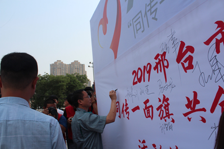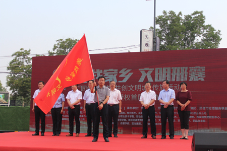 2019617日上午,我公司與邢臺(tái)市各行業(yè)的30家代表單位共同參加了,由市宣傳部、文明辦舉辦的“同傳一面旗 共創(chuàng)文明城”傳旗活動(dòng)暨手繪邢臺(tái)授權(quán)首展啟動(dòng)儀式。