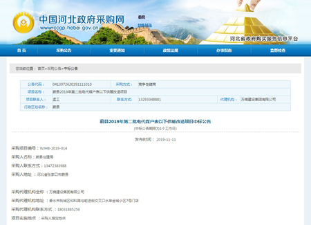 河北光源太陽能科技有限公司,在2019年11月11日,蔚縣2019年第二批電代煤戶表以下供暖改造項目中標(biāo)公告,為我公司2019年度輝煌的經(jīng)營業(yè)績再添濃墨重彩的一筆,“光源進萬家 溫暖你我他”!圍繞著一個目標(biāo),朝著一個方向,光源人不斷邁進!
